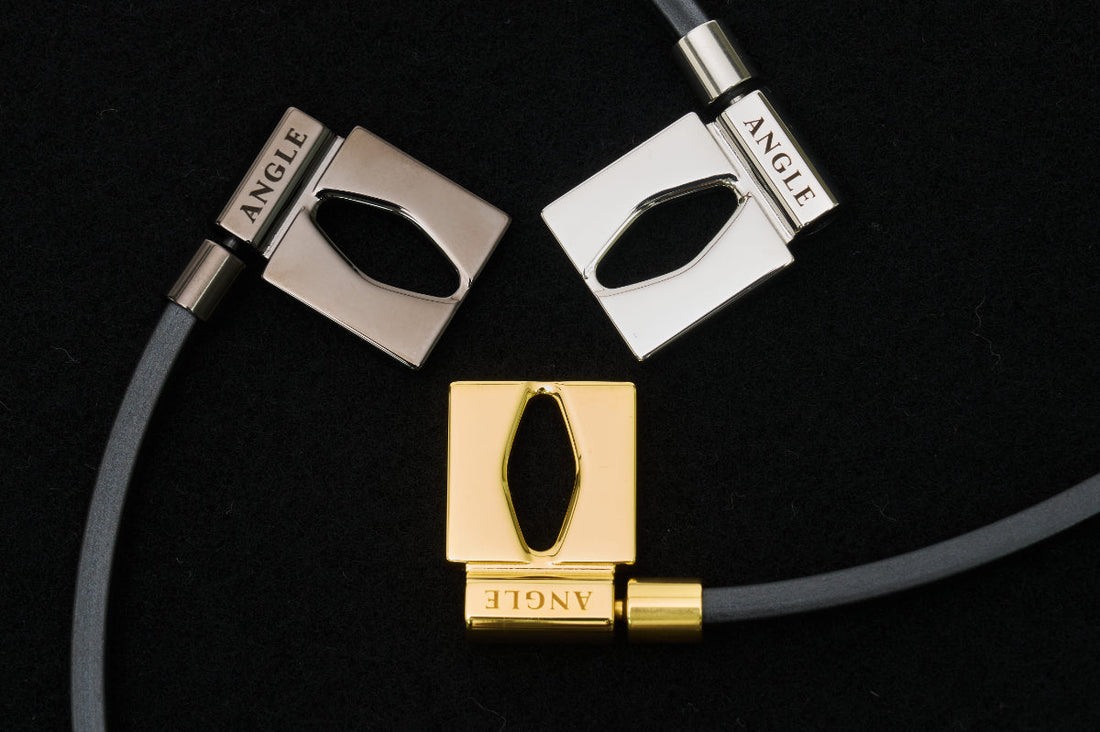ANGLEは機能面だけでなく、デザインにもこだわっています。日常的に使えるシンプルで洗練されたデザインは、スポーツの場だけでなく、普段のファッションにも合わせやすいのが魅力です。また、金属パーツにはSUS316Lという高品質のステンレスを使用しており、人工関節にも使われるほど肌に優しい素材で、敏感肌の方でも安心して使えます。